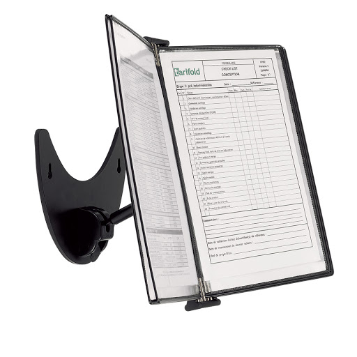 Multidirectional reference display includes 10 letter-size pockets with 20 views to put frequently referenced documents and information at your fingertips.