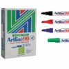 Artline 90 markers are a standard size marker, containing a safe Xylene free alcohol solvent based ink, this is quick drying and water resistant. These markers are suitable for use on most surfaces including paper, cardboard, plastic, metal and glass. Artline 90 markers can be refilled with Artline ESK-20 Marking Ink.