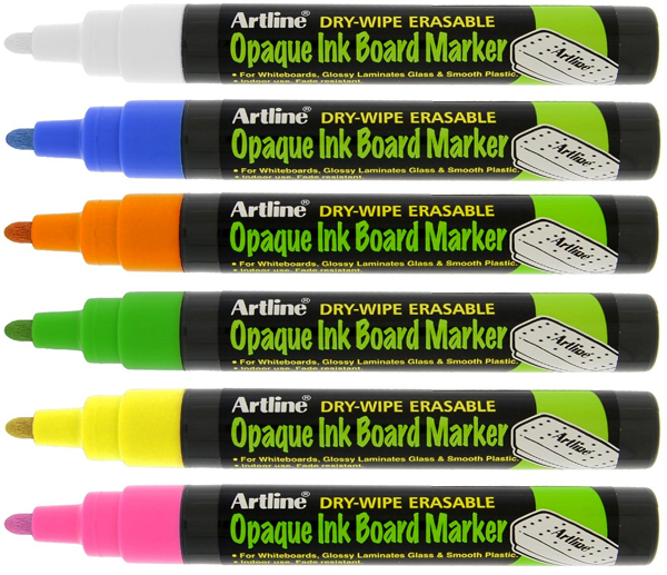 Excellent for all whiteboards, glass and plastic. Erasable with a regular whiteboard eraser.