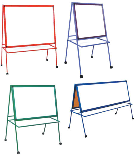 - Full Saiz Magnetic whiteboard surface with stand at children’s height & eye Level.